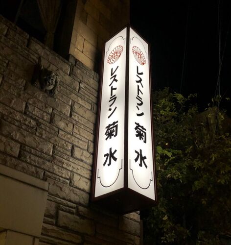 京都人なら知らない人はいないであろう、南座前の祇園入り口のシンボルでもあるレストラン菊水です (*^。^*) 夜に入ったことがあるのは、屋上のビアガーデンやってるときだけなので、この時期1Fに夜入るのは初めてです(^_^;) 喫茶と軽食のイメージですので…
